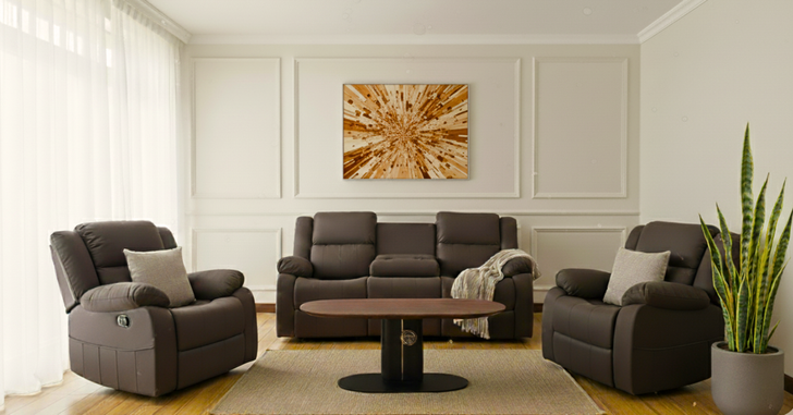 Alcona 7 Seater Recliner With Drop-Down Table In Brown (J453)