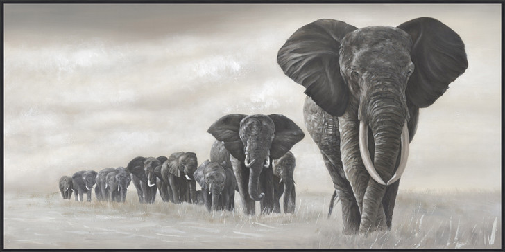 Tempered Glass Wall Art - Elephants on a Stroll - YNC2391 WG